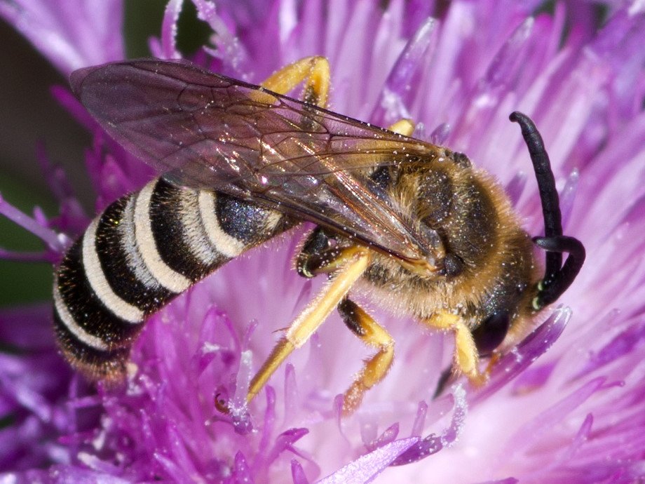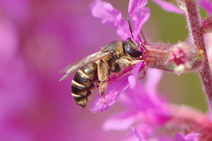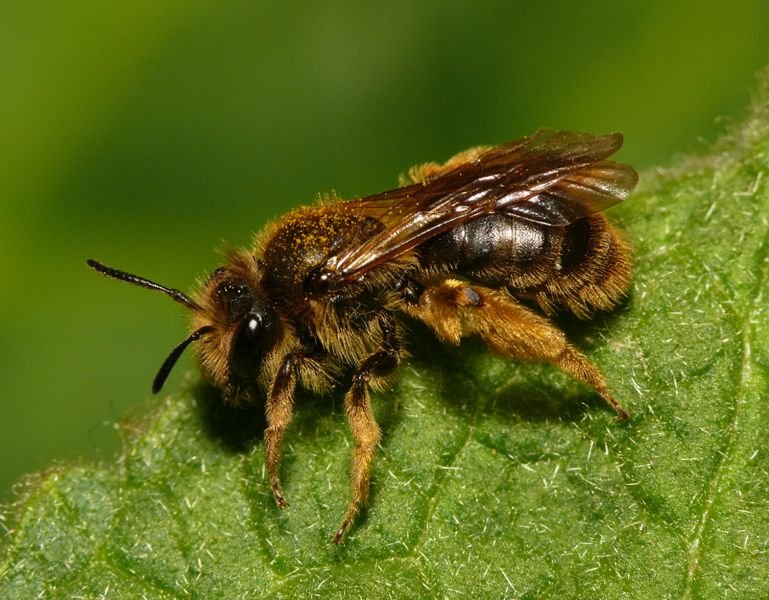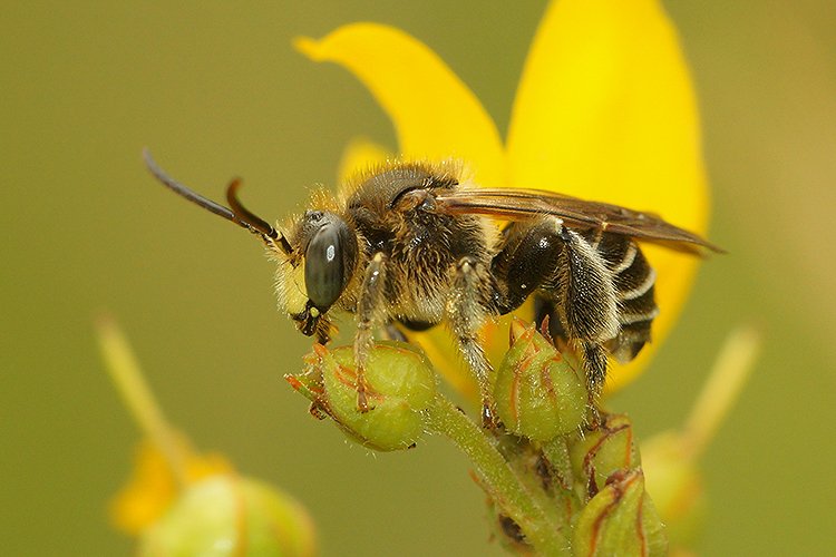 Er zijn heel veel wilde bijen, zo’n 360. En dan kunnen de mannetjes en de vrouwtjes er ook nog anders uitzien.
